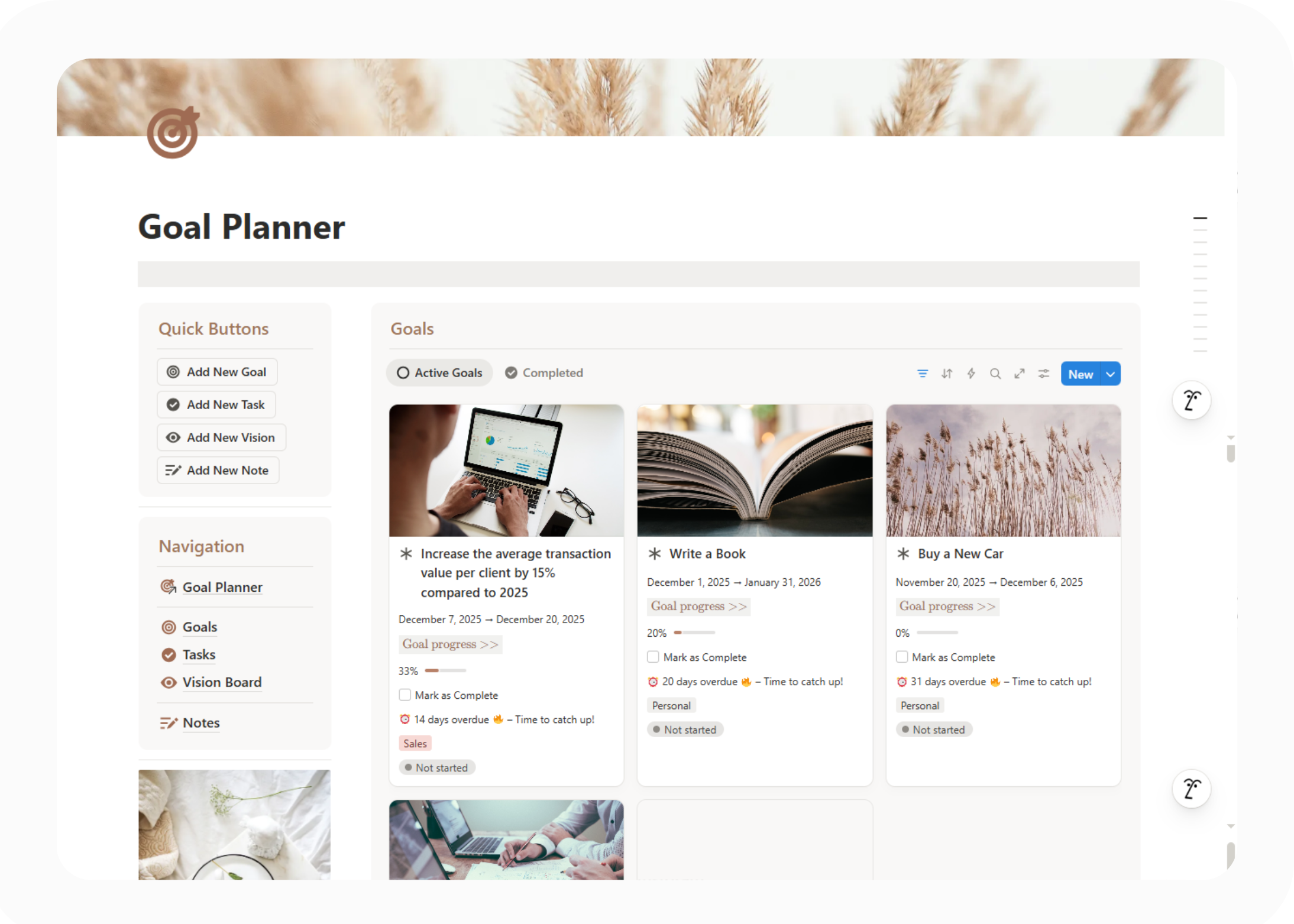 Take control of your goals with a thoughtfully designed Notion planner that helps you plan with clarity, stay focused on what matters, and track progress seamlessly — all in one place.