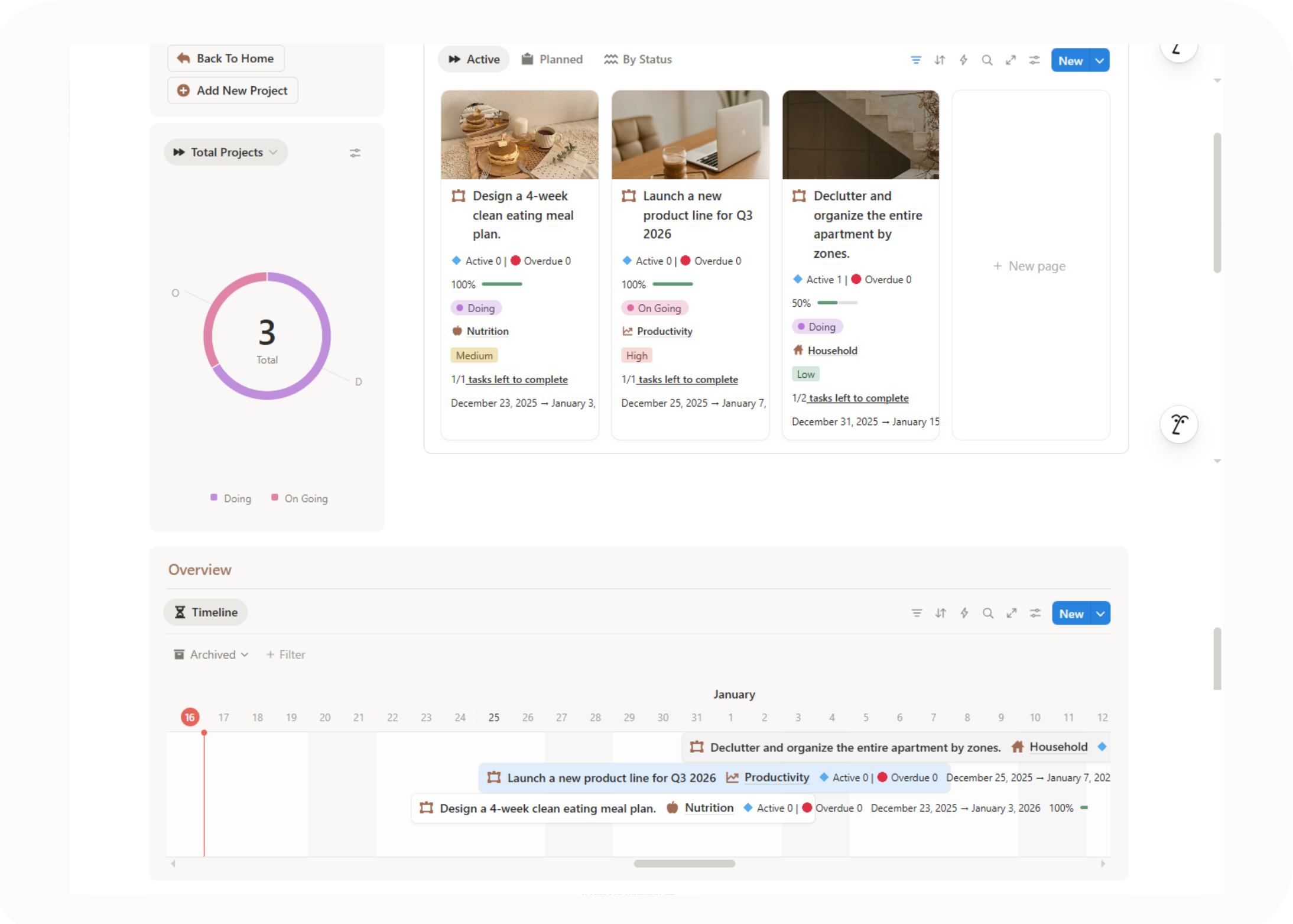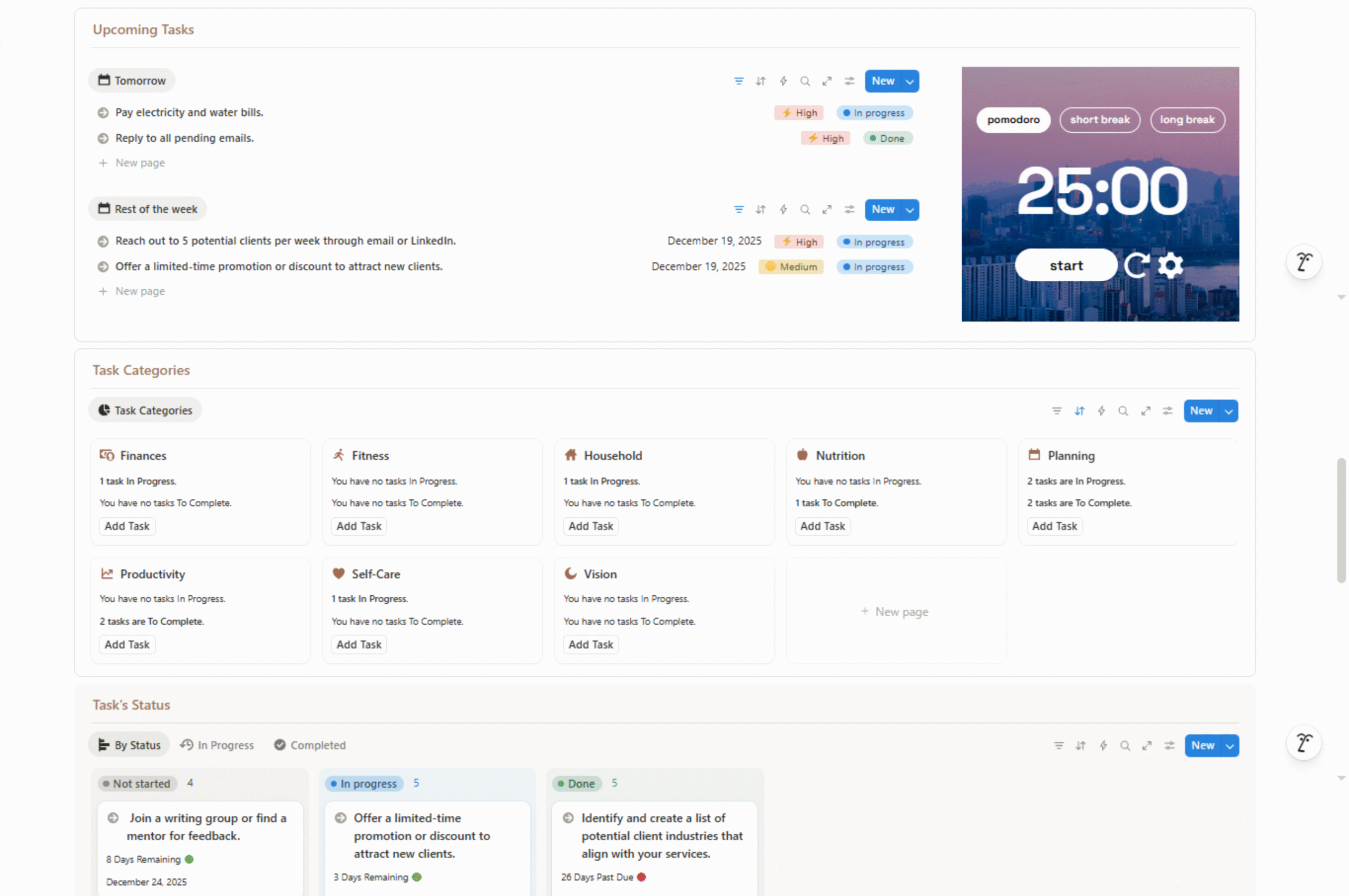 A powerful Notion task manager designed to help you plan, prioritize, and track your tasks in one organized workspace—so you can stay focused and get more done.